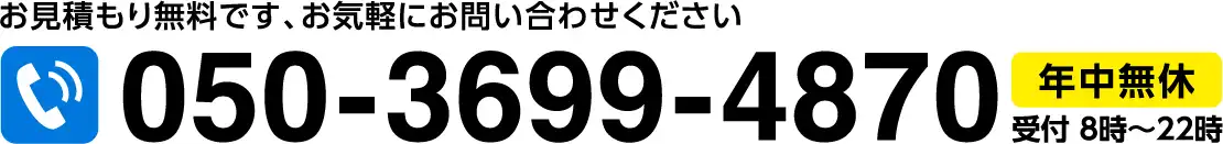 TEL.050-3699-4870 受付 8:00〜22:00 年中無休